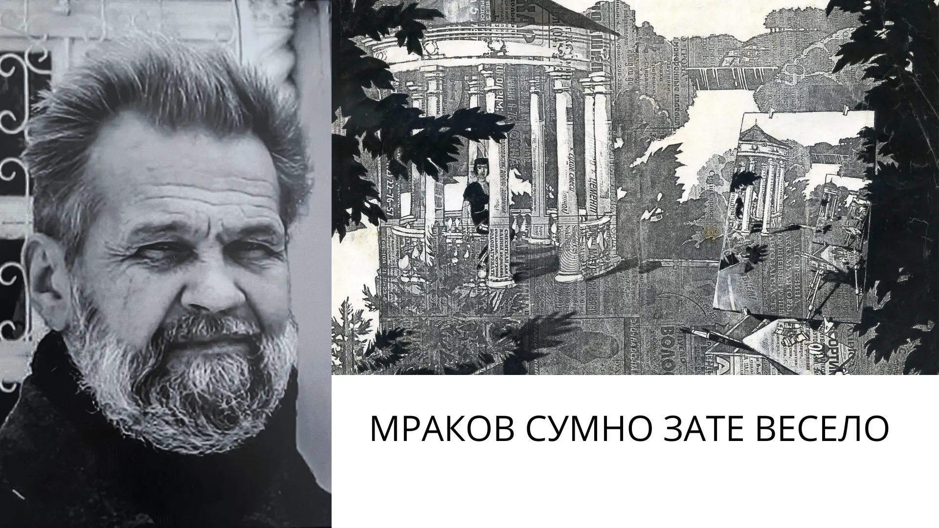 Назва виставки — «Сумно зате весело». Це рядок з його вірша, який влучно та лаконічно описує творчість митця.